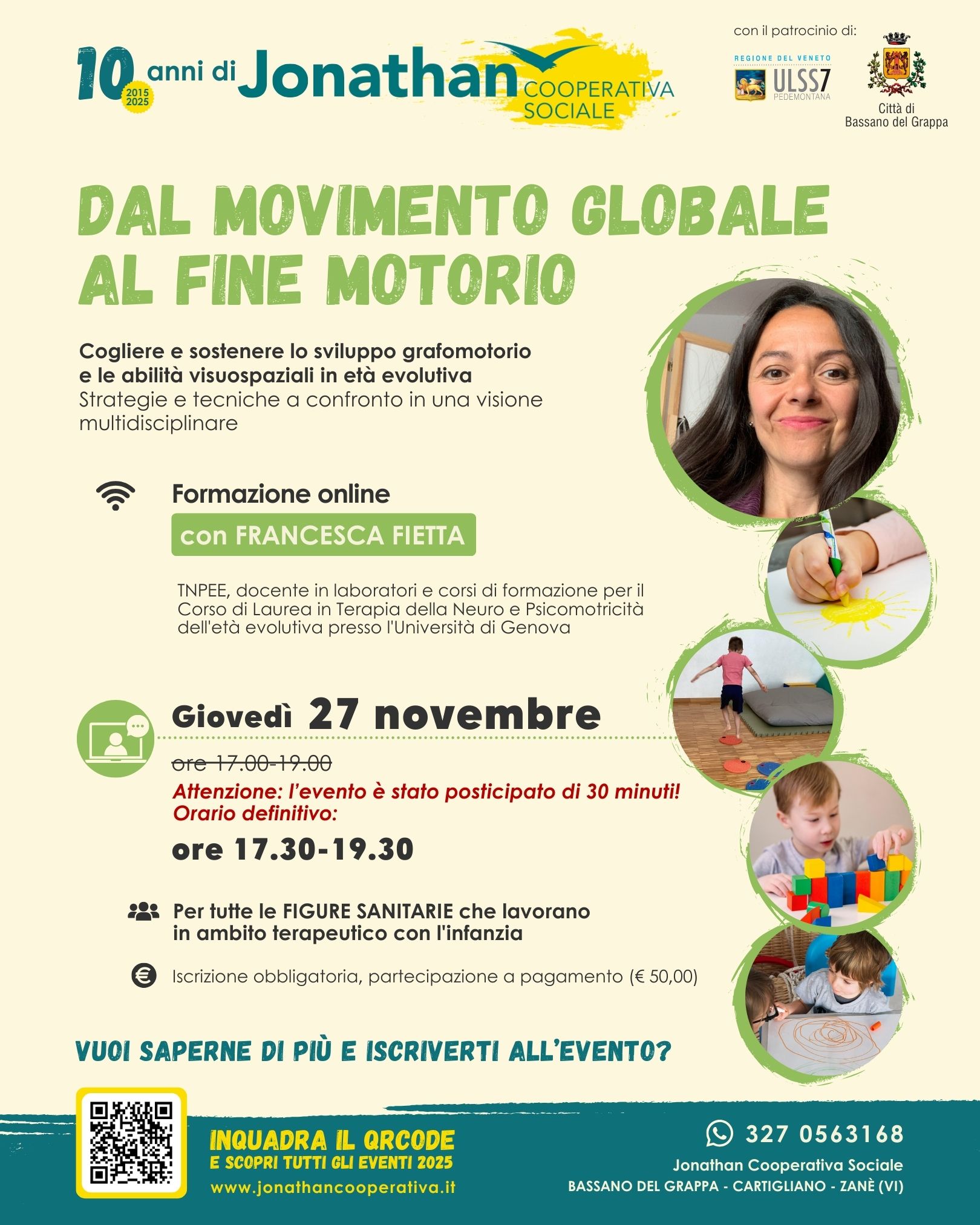 L’iscrizione si intende confermata solo a seguito del versamento della quota, da effettuarsi entro il 10/11/2025 a Jonathan Cooperativa Sociale A R.L.